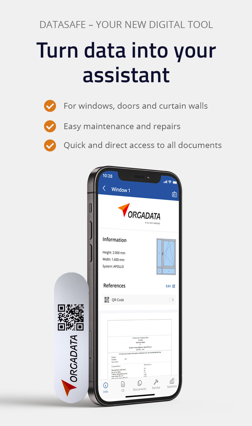 In the future, you can attach a small QR code to windows, doors and curtain walls. A scan of the code will let you know all there is to know about the element: size, glass, profile, colour, etc. – a huge advantage to you and your work on maintenance and repairs.